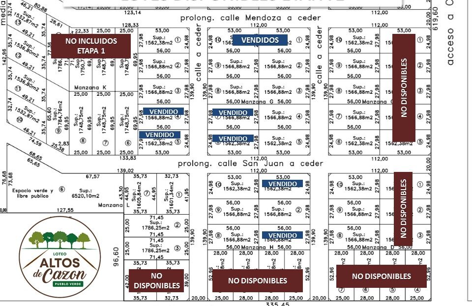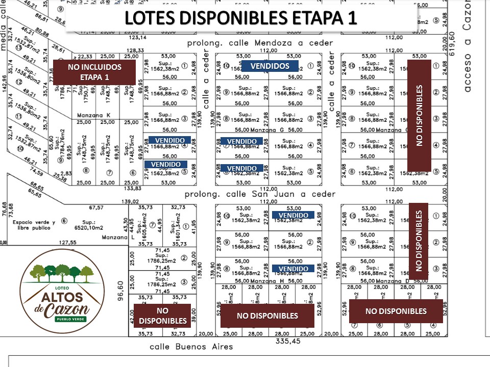 • Se planifica el loteo en tres etapas. Superficie minina de 1500 m2 cada lote.